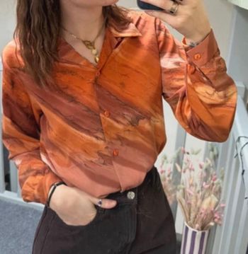 Chemise fluide imprimée orange marron Claude de Saivre T38