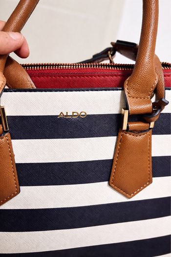Sac aldo rayé rouge et bleu marron camel