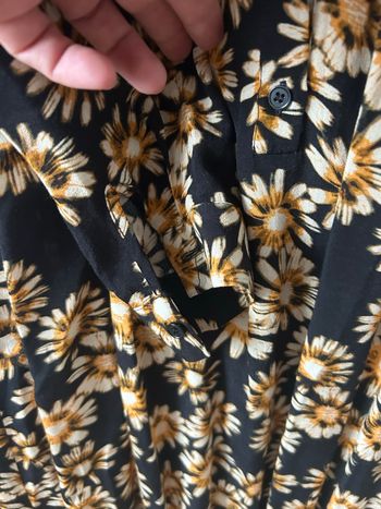 Blouse manche courte été femme 100% soie noire motifs fleuris col TBE taille S american vintage