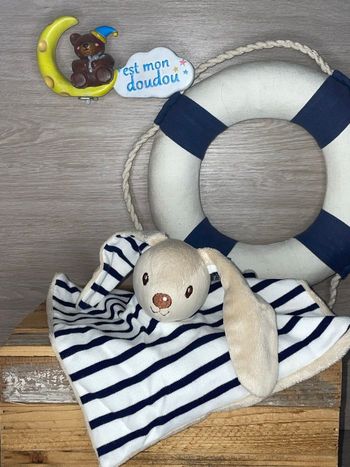 Doudou plat ours armor lux rayé bleu marine marron beige Blanc Carré Bretagne