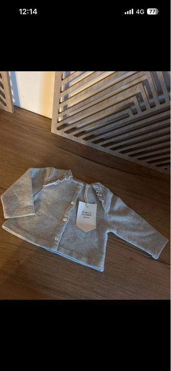 Sweat gris "Arsène et les pipelettes" , taille 6 mois, col boutonné