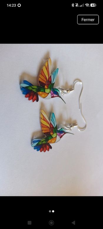 Boucles d'oreilles oiseaux colibris acrylique neuf