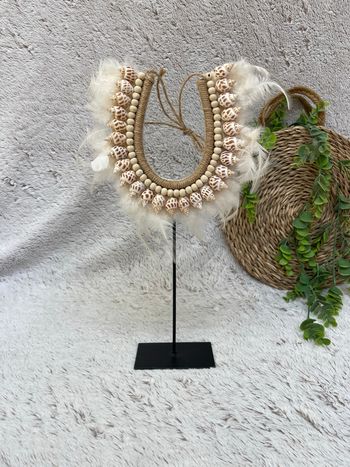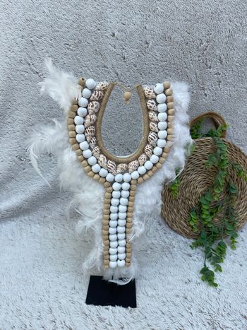 Collier papou en plume et coquillage balinais