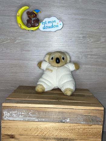 DD003651 doudou peluche ancien koala bebison beige marron Noir Éponge Vintage