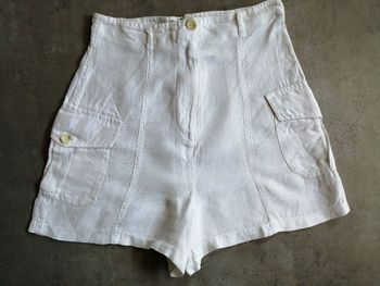 Short long blanc en lin avec 2 poches Taille haute Taille 1 avec lacet derrière Biscote