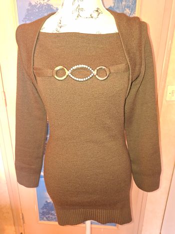 Pull Long Ajusté Marron Chocolat – Détail Bijou Strass – T. 3 (40/42)