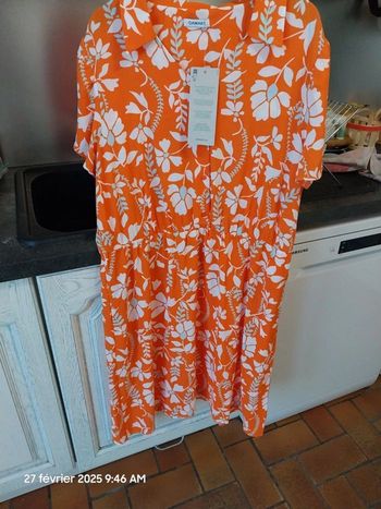 Robe crêpe reliéfé orange fleuri DAMART - taille 46 - couleur orange fleuri