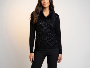 pull noir avec strass et col tout doux Taille M Derhy Neuf
