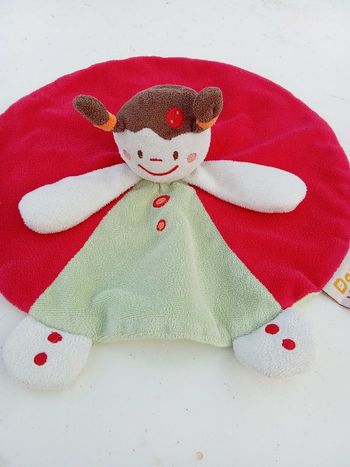 Doudou rond poupée fille rouge ,vert et blanc - Dou Kidou