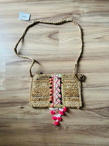 Sac Bandoulière Bohème en Paille Tressée Flora Neuf