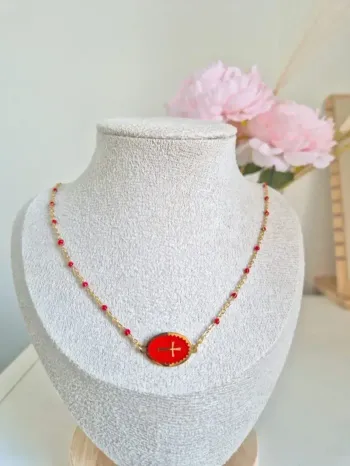 🌸 perles résines rouges avec médaille croix