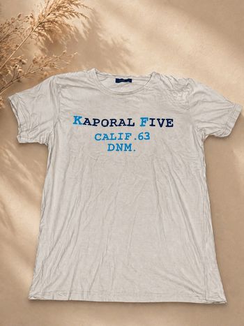 T-shirt manches courtes Kaporal Jeans – Blanc & vert kaki – Taille L (équivalent M)