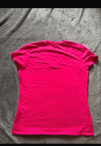 T-shirt rose clair avec un dessin blanc sur l'avant. Coupe légère et confortable, parfait pour le féminine quotidien ou l'été. Le col V apporte une touche