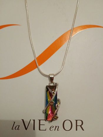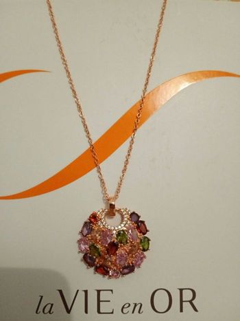 Collier femme plaqué or, pierre améthyste, grenat, topaze, péridot