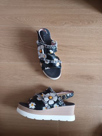Sandales 37 laura vita neuf été noir plate-forme avec talon