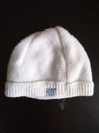 Bonnet coton blanc naissance, mixte bébé fille ou garçon, chaud,l'hiver, effet tricoté