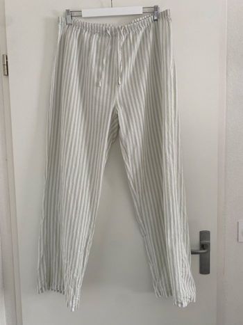 Bas de pyjama rayé vert sauge – taille XL – comme neuf