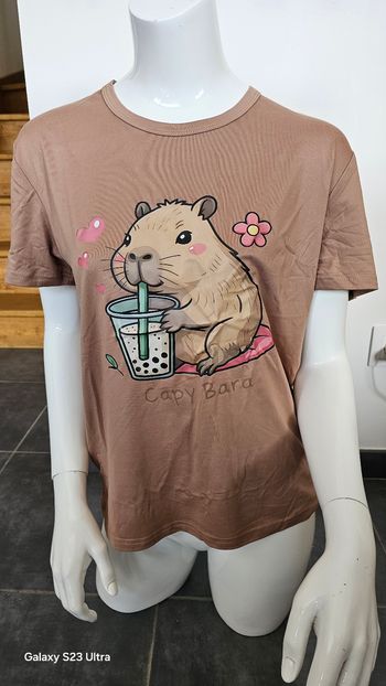 T-shirt capybara kawaii beige motif bubble tea taille M