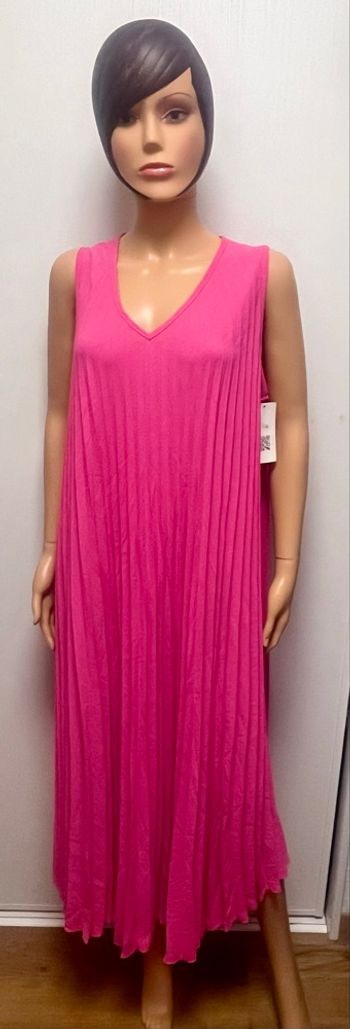 Robe longue plissée fuschia