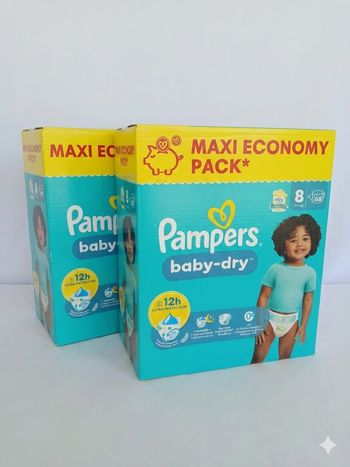 2 Cartons Pampers Baby Dry T8 136 Couches 17kgs+