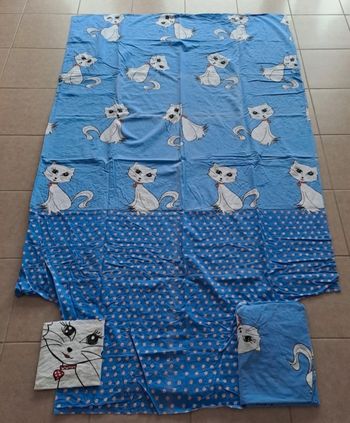 Housse de couette, drap housse et Taie d'oreiller neuf enfant chat blanc 130 x 180 Neuf