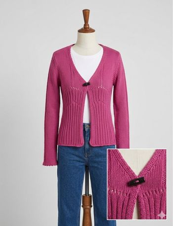 Gilet tricoté fuchsia à col V - Pastille menthe - Taille 38