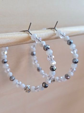 Boucles d'oreilles en acier inoxydable perles platine et facettes