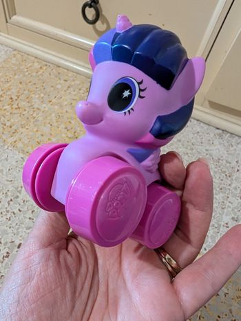 2 figurines petit poney, licorne, bleu, blanc violine, bleu,
