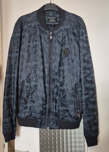 BlousonPhilipp Plein Homme camouflage noir patch PP, taille L 40 similicuir