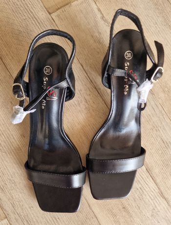 Sandales talons noirs élégantes T38 – quasi neuves – avec boîte