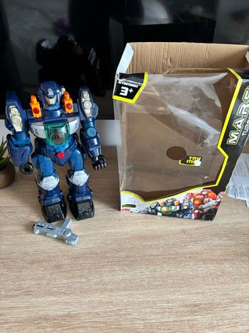 Grand super robot turbo bleu 30 cm qui marche lumière et son