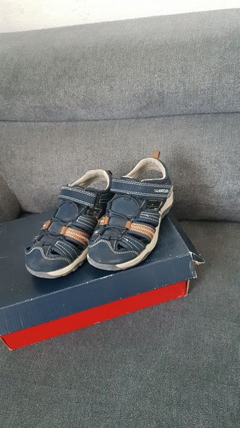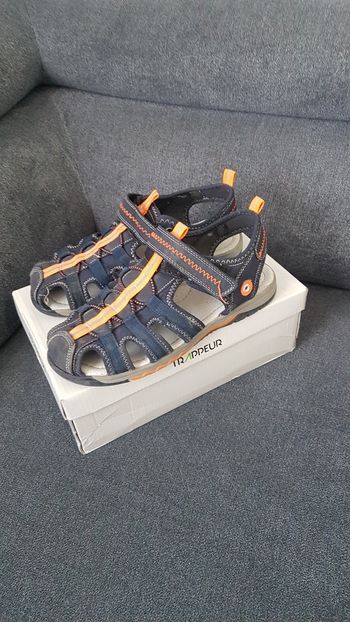 Tongs sandales nu pieds Trappeur marine cuir et liège taille 37