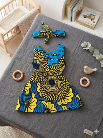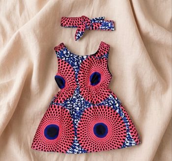 Robe en wax avec pression à l’épaule + son bandeau à nouer
