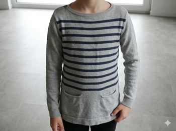 pull rayé gris et marine avec 2 poches taille 13-14 ans ZY girl (trace derrière la manche)