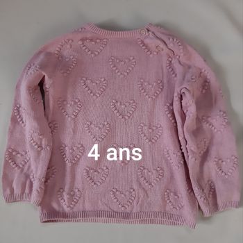Pull léger en coton rose fille - cœurs - H&M - 4 ans