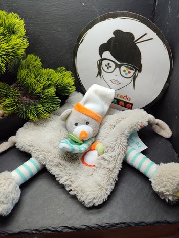doudou ours baby Nat' bonnet blanc gris bleu orange fourrure patte bn020 Oscar