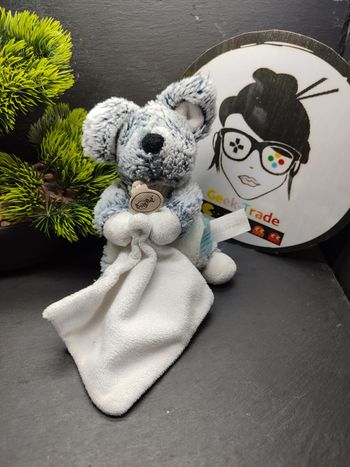Doudou Souris Noir Gris Chiné Mouchoir Blanc baby Nat' bn050 Pantin Fourrure