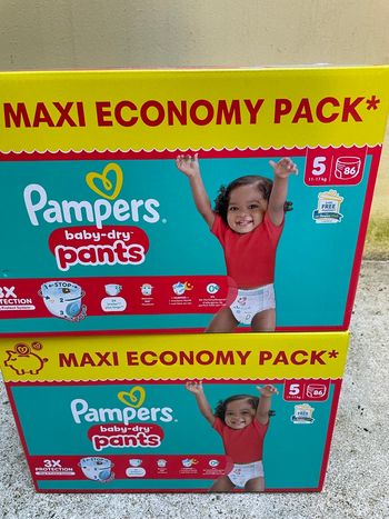 Vents pack 2 cartons Pampers taille 5 baby dry pants