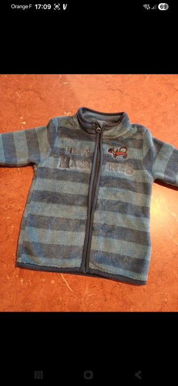 Gilet zippé polaire bleu à capuche ourson taille 9-12 mois marque Lupilu