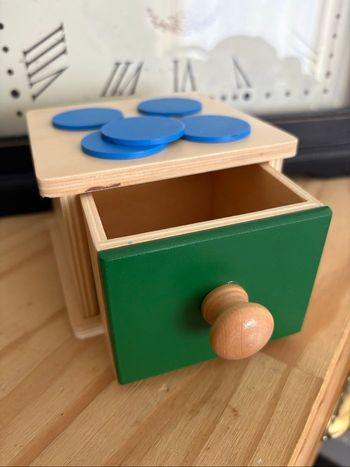 Boîte à forme vintage enfant, jeu, jouet, encastrement dès 2 ans , motricité fine, vintage, plastique, jaune, bleu, motricité fine