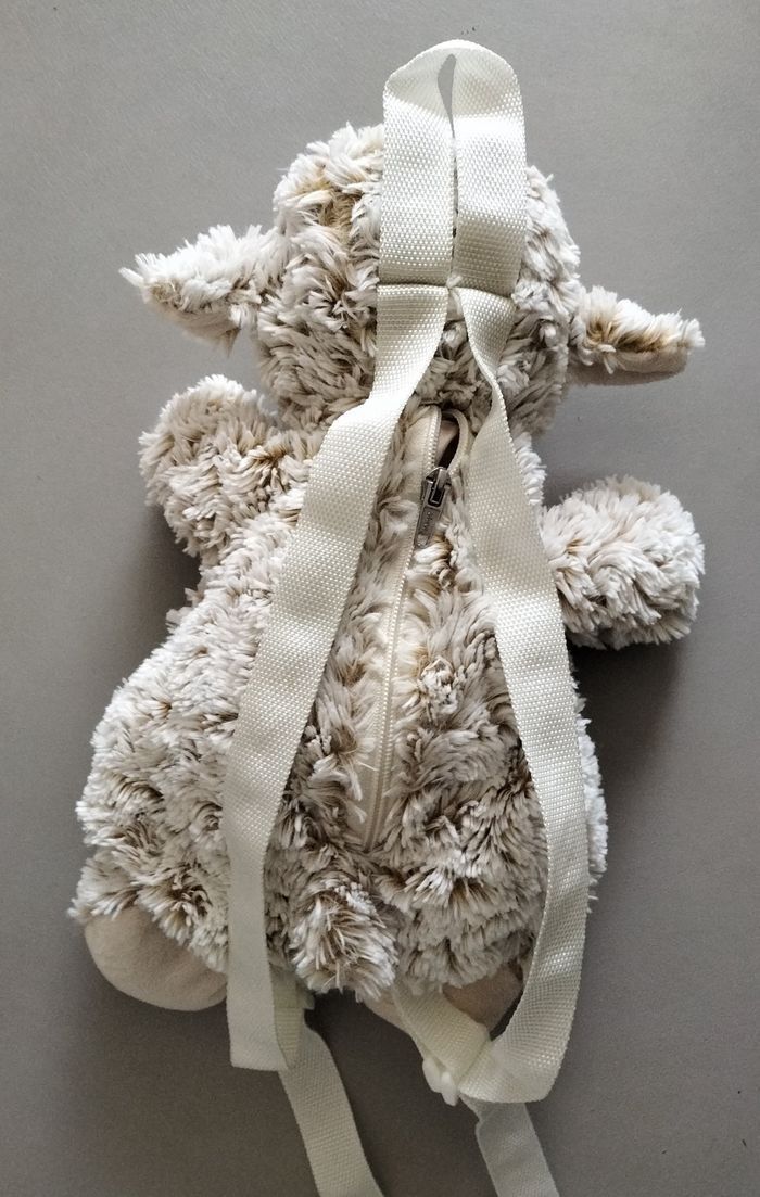 #sac à #dos #mouton tout doux Petit espace de rangement dans le dos du mouton, se ferme avec une fermeture éclair. Les bretelles sont réglables Hauteur : 40 cm
