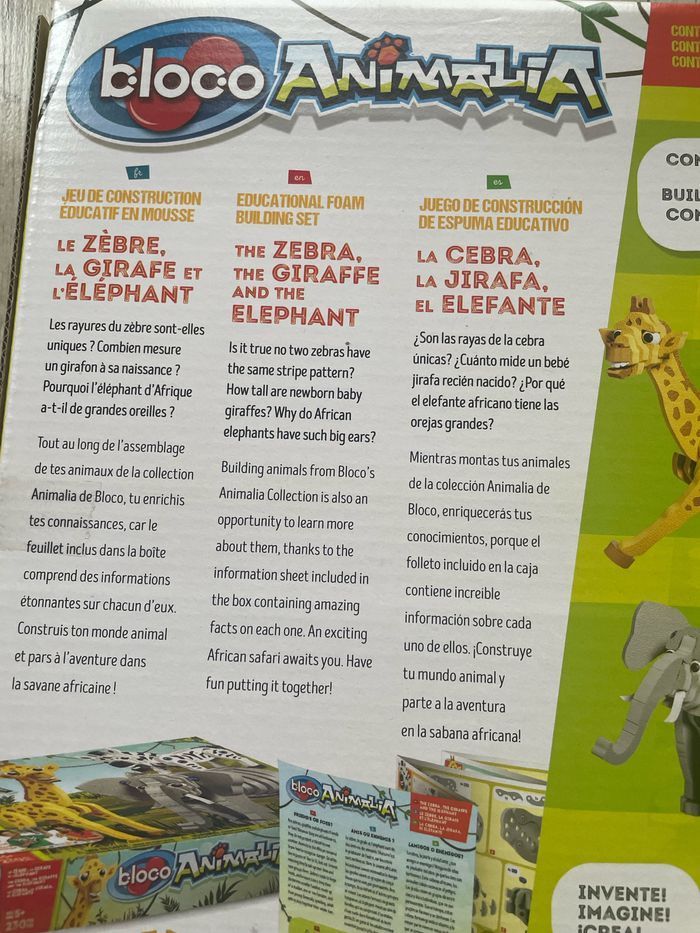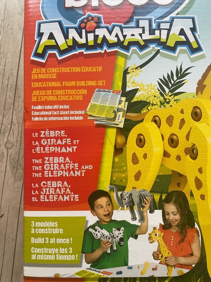 Jeu de construction en mousse Le zèbre, l’éléphant et la girafe Neuf, boite scellée