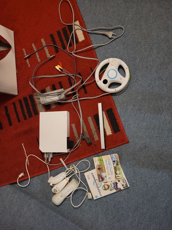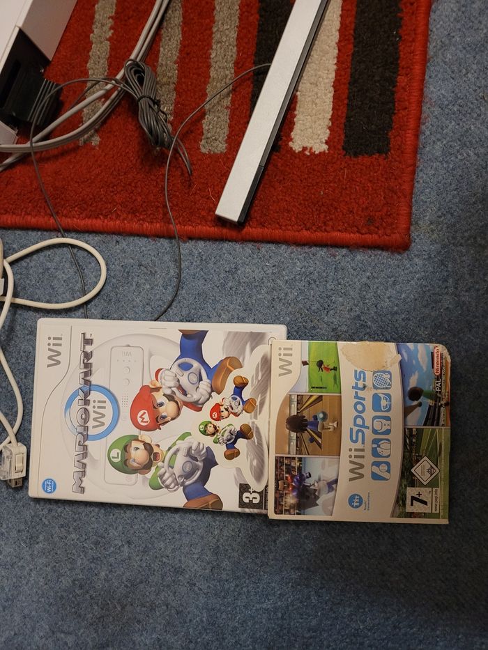 Console wii avec volant 2 jeux et une carte avec environ une 50 de jeux ( les stroumphs,Sonic, bob l'éponge, Mario...) 60 euros