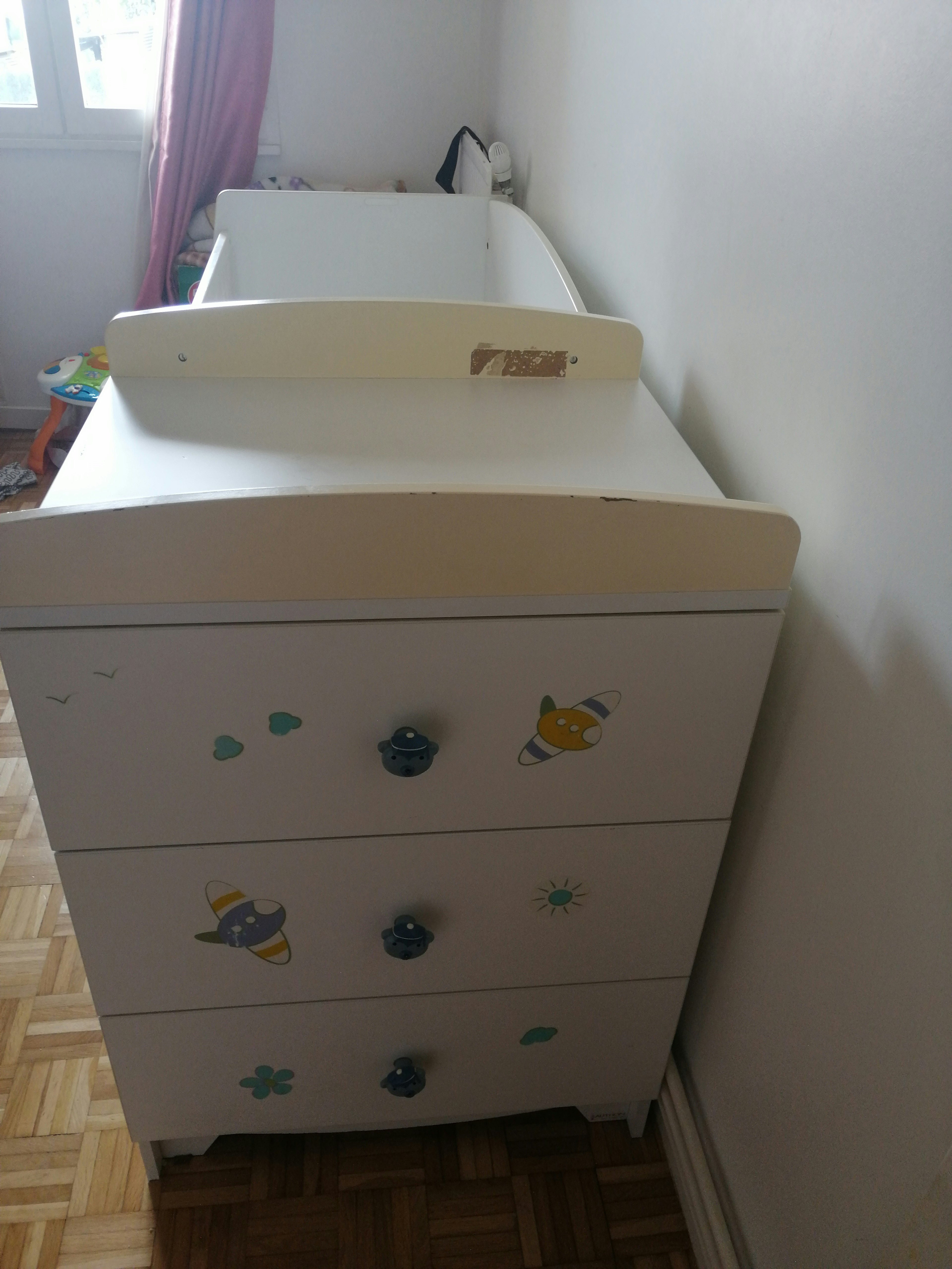 Lit bébé 60x120 + meuble à langer Sauthon + matelas – ensemble chambre bébé