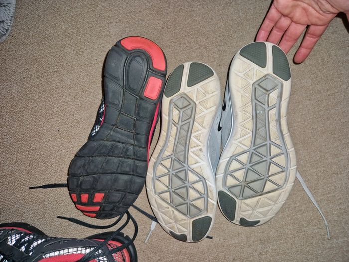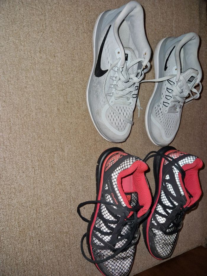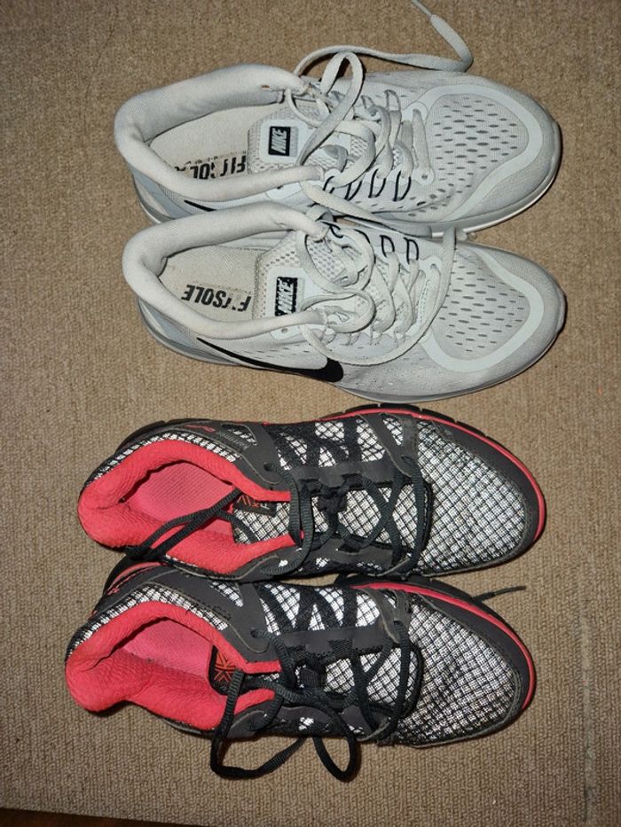 Lots 2 paires de baskets : Nike grise, taille 38.5, état très bon état. Decatlon couleur gris et rose, taille 38, très bon état. Prix : 10 euro les 2 paires.