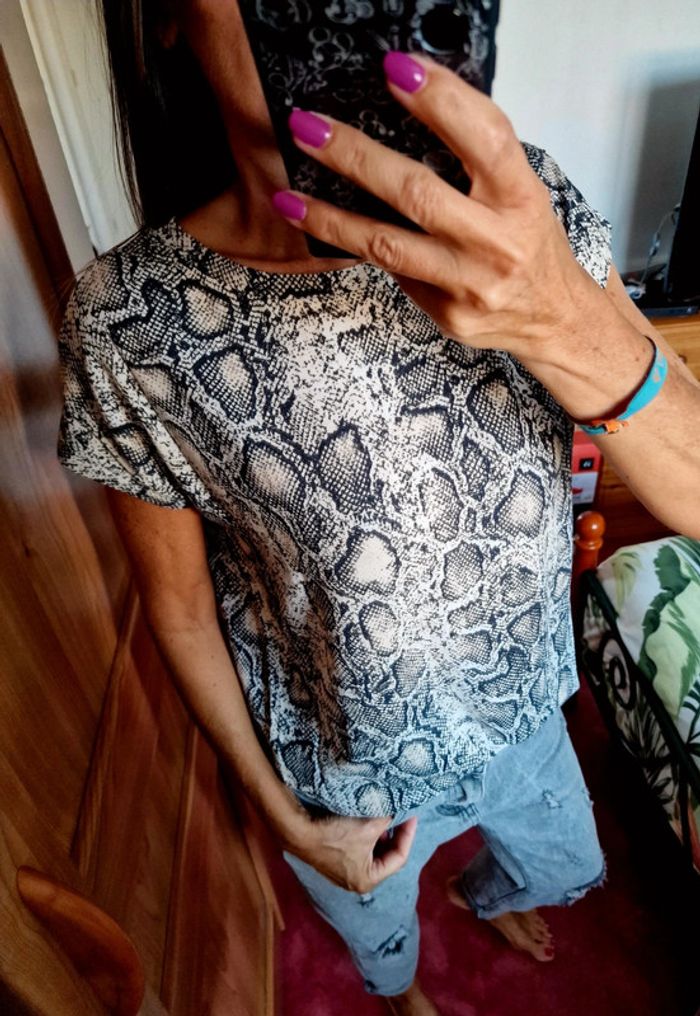 ATTENTION ENVOI UNIQUEMENT MONDIAL RELAY Tee shirt imprimé python de chez C&A taille XS coupe loose ,agréable à porter en modal #teeshirtpython #C&A