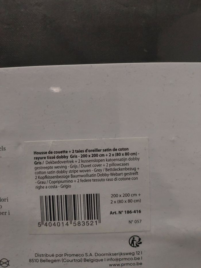 Bonjour Je vends cette parure de housse de couette avec ses 2 taies d oreillers assorties Marque maison héritage Jamais servie Rayure tissé dobby gris Housse de couette 200 cms sur 200 cms 2taies d oreillers 80 cms sur 80 cms