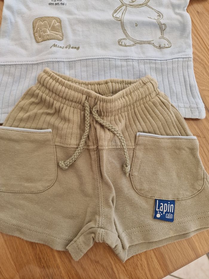 ATTENTION ENVOI UNIQUEMENT MONDIAL RELAY Ensemble short ciel kaki clair taille 3 mois bon état