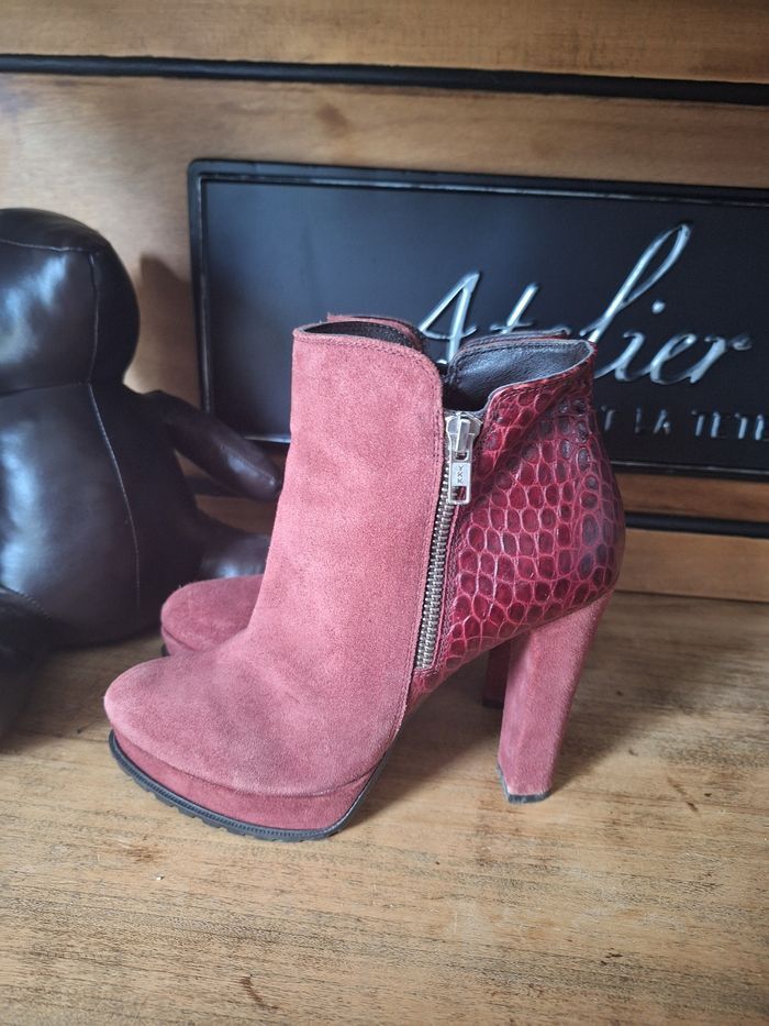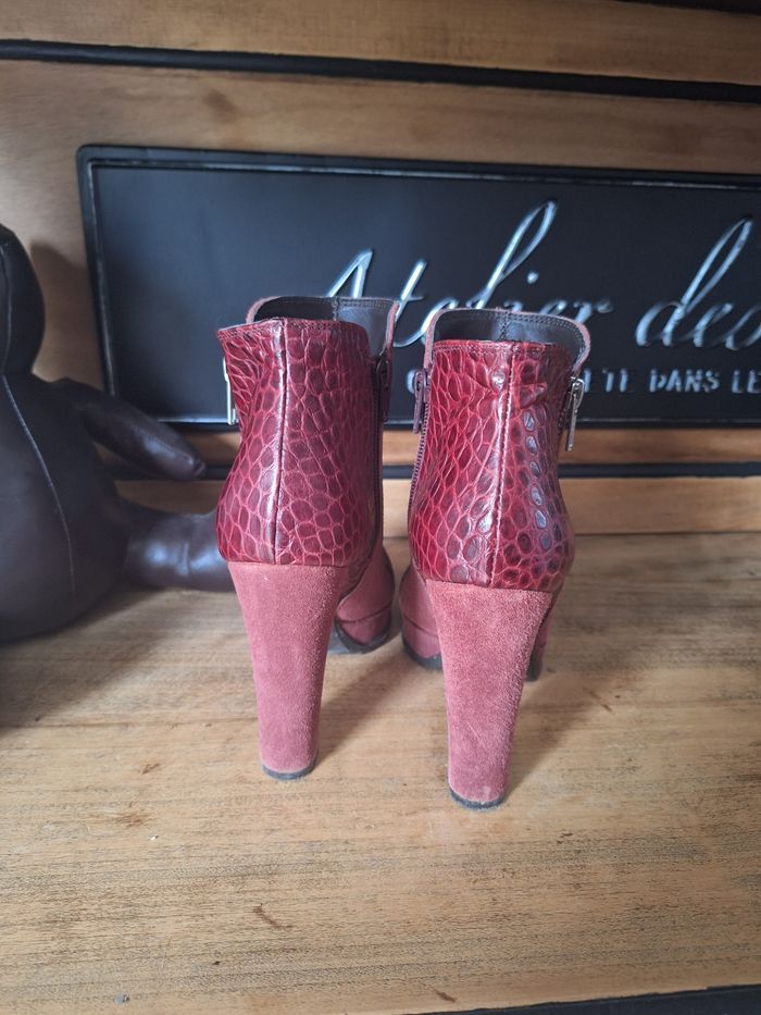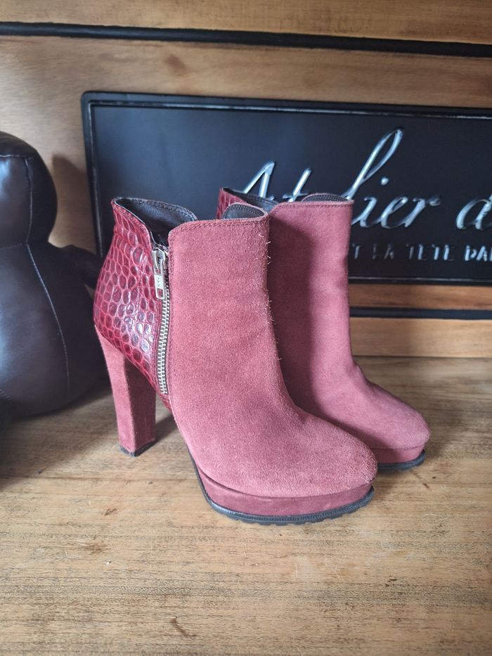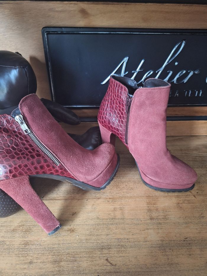 💥DESTOCKAGE 💥 -30% 🏷8,40€ CHAUSSURE P37 N°173 bottine dain Bordeaux, crocro ( vernis ) Fermeture eclair cote Hauteur talon 12 cm Pointure 37 Texto 12€ #kelly_chaussureP37 #kelly_soldes