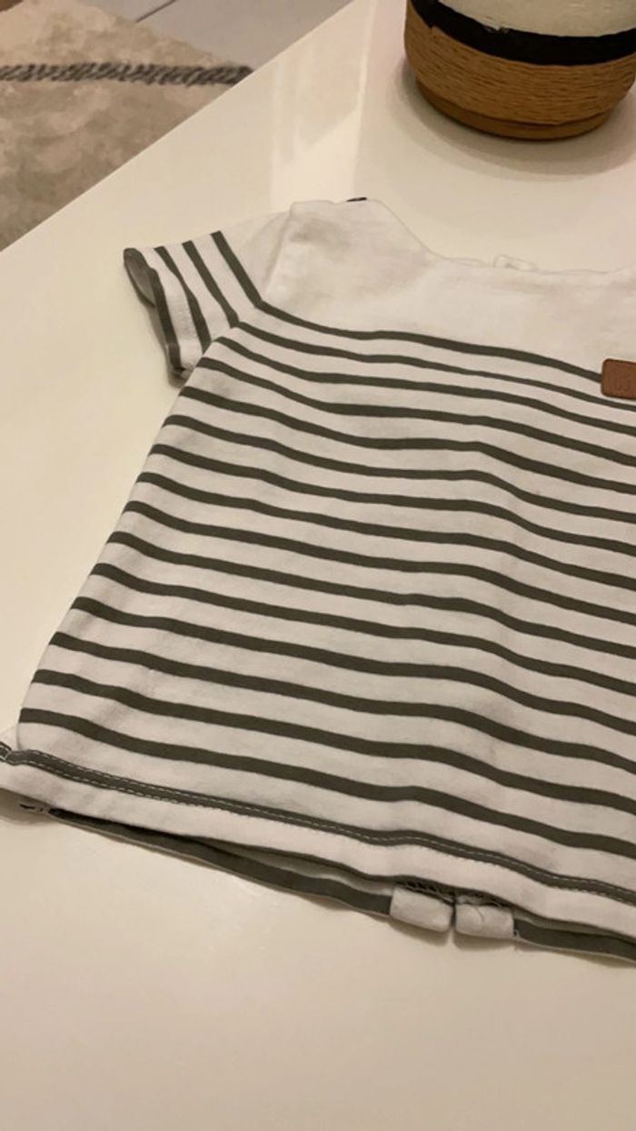 tee shirt blanc et rayures kaki 6 mois 68 cm excellent état #teeshirtbebe #bebe6mois #bebepup6mois